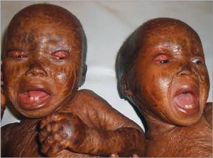 Twins presented with dry and scaly skin as seen above suggested to have an X-linked recessive inherited disorder.. What disorder could this likely be? Can you suggest a treatment?