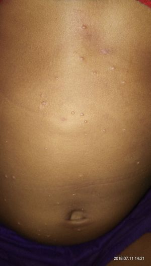 Molly’s I’m is my first differential (same fam of small pox), viral infection, varicella.