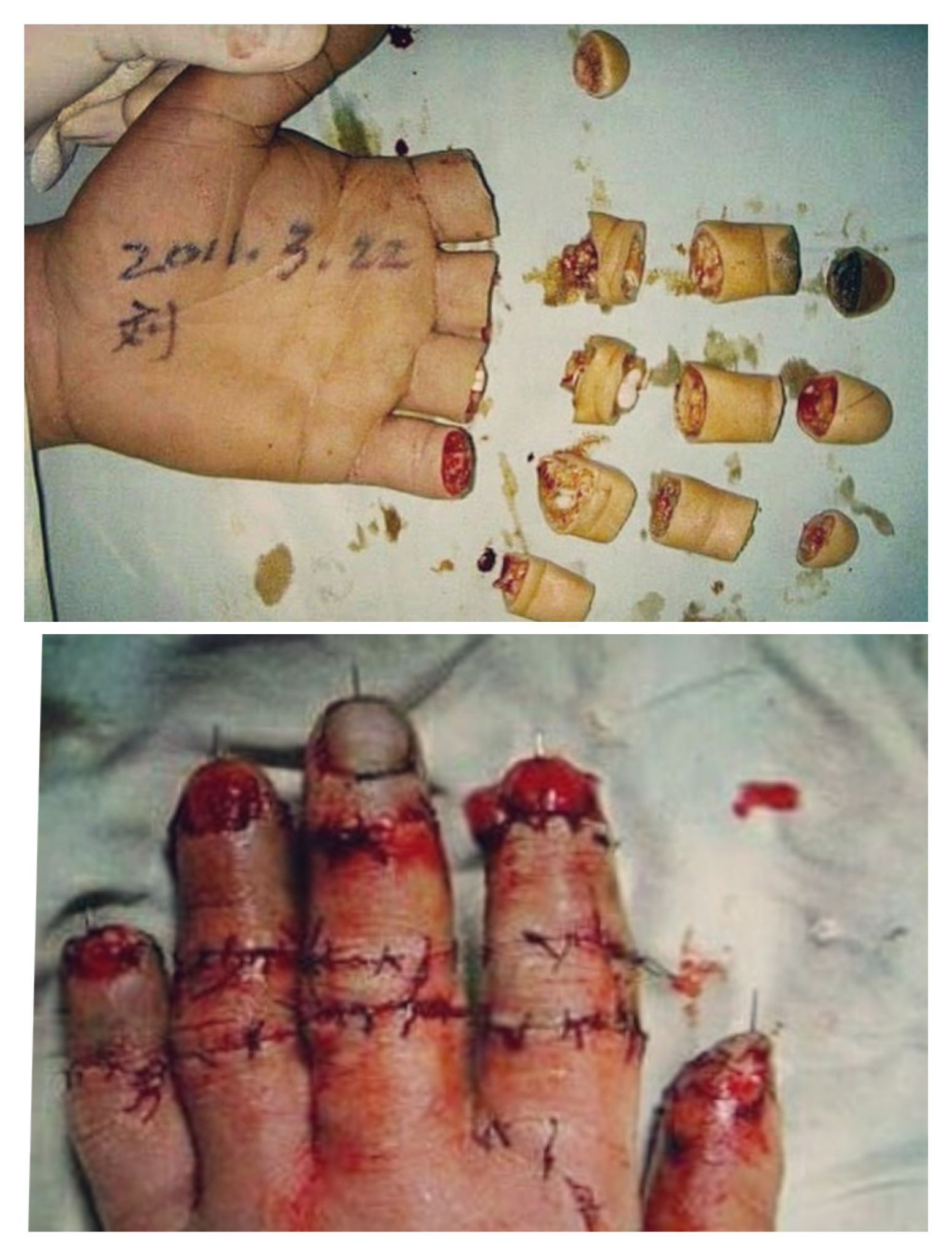This poor worker had his hand caught in the the machine resulting in slicing of his fingers in several parts. It took 16 hours to reattach all the digits only because he was brought to the hospital in time. By:https://www.instagram.com/p/BfeH59nAJ1M/?utm_medium=copy_link
