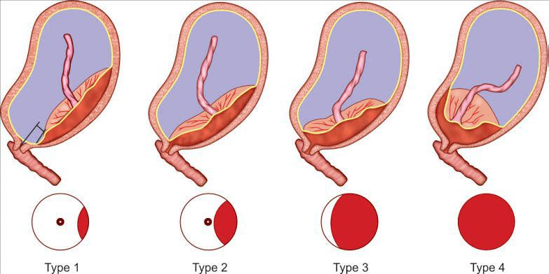 Placenta previa is a condition where placenta is found covering the cervix completely or partially. TYPES: Type 1: Low-lying placenta previa Type 2: Marginal placenta previa Type 3: Incomplete or partial central placenta previa Type 4: Central or complete placenta previa Risk factors are: Age > 35 years Cocaine Smoking Previous placenta previa Previous C-section Picture credits: https://www.thesciencenotes.com/placenta-previa-theories-typesco-plications-management-and-treatment/