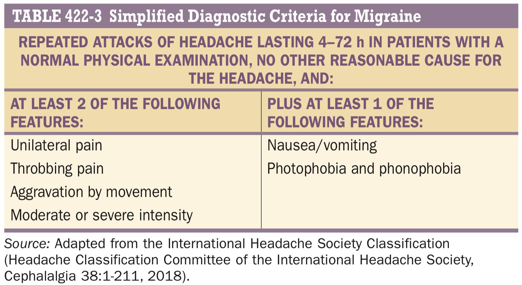 The above given chart provides a simplified, easy memorisable version of diagnostic criteria of a migraine headache. Source: Harrison’s Principles of Internal Medicine, 20th Edition, Page No. 3100