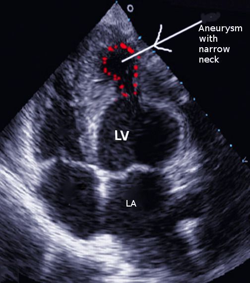 One of the complications of Myocardial Infarction in ventricular aneurysm. It arises secondary to ventricular wall weakness. Image via: https://www.ncbi.nlm.nih.gov/books/NBK551519/figure/article-24162.image.f2/