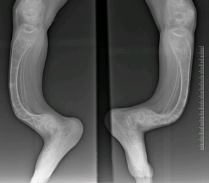 Can you hit the right diagnosis? Symptoms include: bone deformities.multiple broken bones.loose joints.weak teeth.blue sclera, or a bluish color in the white of the eye.bowed legs and arms.kyphosis, or an abnormal outward curve of the upper spine.scoliosis, or an abnormal lateral curve of the spine.
