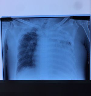 Collapsed lung (atelectasis) cud be due to accumulation of air, blood, inflammatory tissues