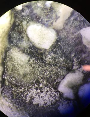 This is a photo I took of Blue cheese under a light microscope. Oh look at the cultivated bacteria!