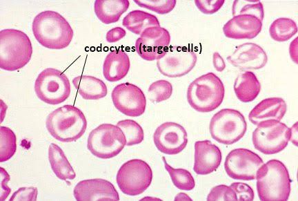 Thalassemia is an inherited disorder of blood in which there is the mutation of the genes involved in the Hemoglobine synthesis. This mutation causes defective synthesis of either alpha or beta chains which causes the red cell abnormality. There are two main types of thalassemia: alpha and beta chain thalassemia. The people with this condition results with fatigue, weakness and pallor. Complications includes iron overload, infections, bone deformities, splenomegaly and slowed growth. Peripheral blood film will shows microcytic hypochromic anemia, nucleated RBCs, anisopoikilocytosis and target cells. Picture credit: https://themedicalbiochemistrypage.org/thalassemias-beta-thalassemias/