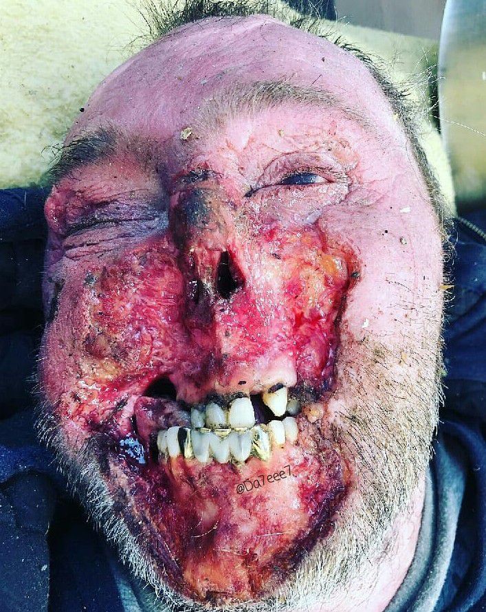 Gross. Is this man alive?? And why couldn't he stop them from eating his face