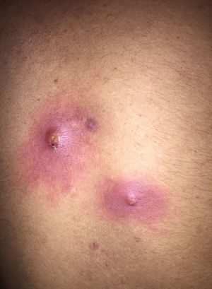 Looks like hidradenitis supurativa. Antibiotics, I&D, corticosteroid injections, and sometimes surgery can help manage symptoms.