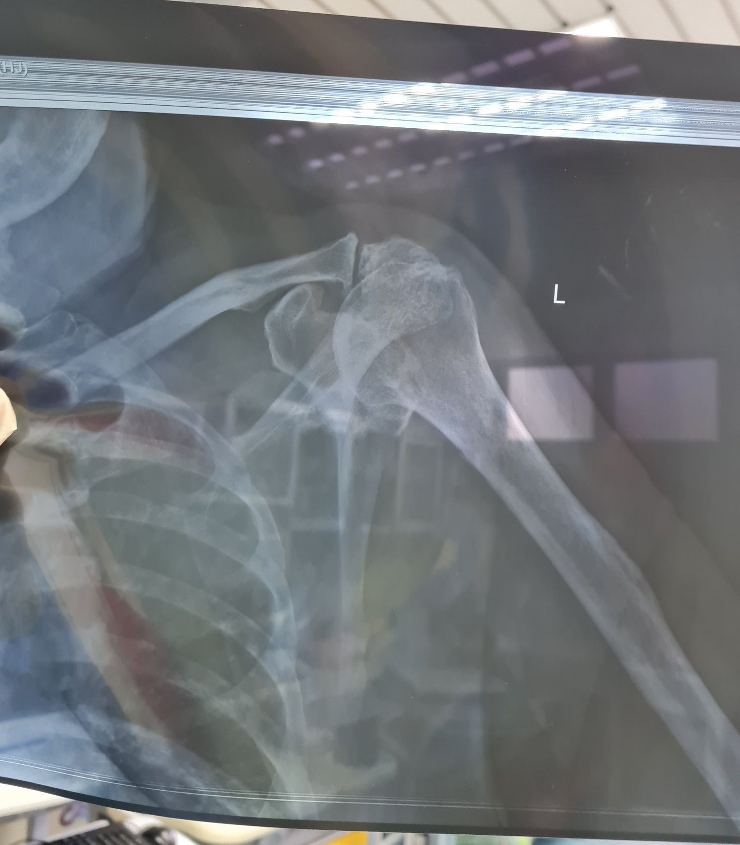 89yrs old male with regular falls. Chronic anterior shoulder dislocation.