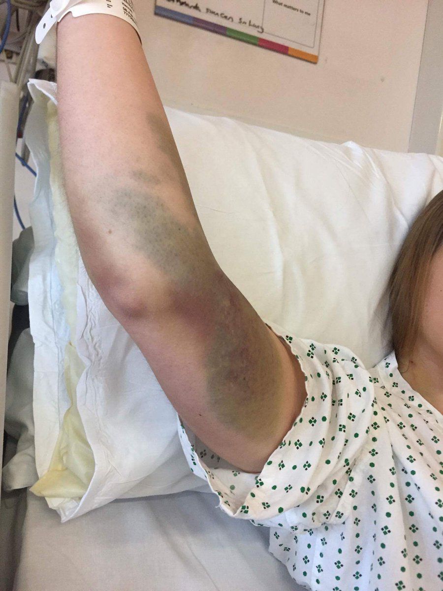 IV cannulation is a common procedure done regularly at almost all medical setups. Following are the complications of IV cannulation: - infection - needlestick injury - phlebitis - thrombophlebitis - emboli - hemorrhage - extravasation - arterial cannulation - hematoma Reference: https://pubmed.ncbi.nlm.nih.gov/9180592/ Image via: https://twitter.com/_hannahneedham_/status/1101419722250350592?lang=fi