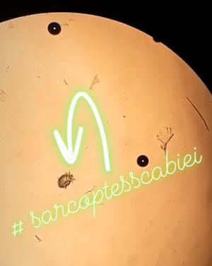35 y/o female c/o severe pruritus (worse at night) and a generalized non-specific eruption all over the body. She went to her PCP who prescribed her Hydroxyzine, which didn’t help. She then went to the ER and got IM prednisone which seemed to subside the pruritus, but a few days later it recured. She finally went to a Dermatologist. Physical exam showed erythematous papules and excoriations on trunk, extremities and groin. A quick skin scraping with mineral oil was performed and this little guy was found guilty!
