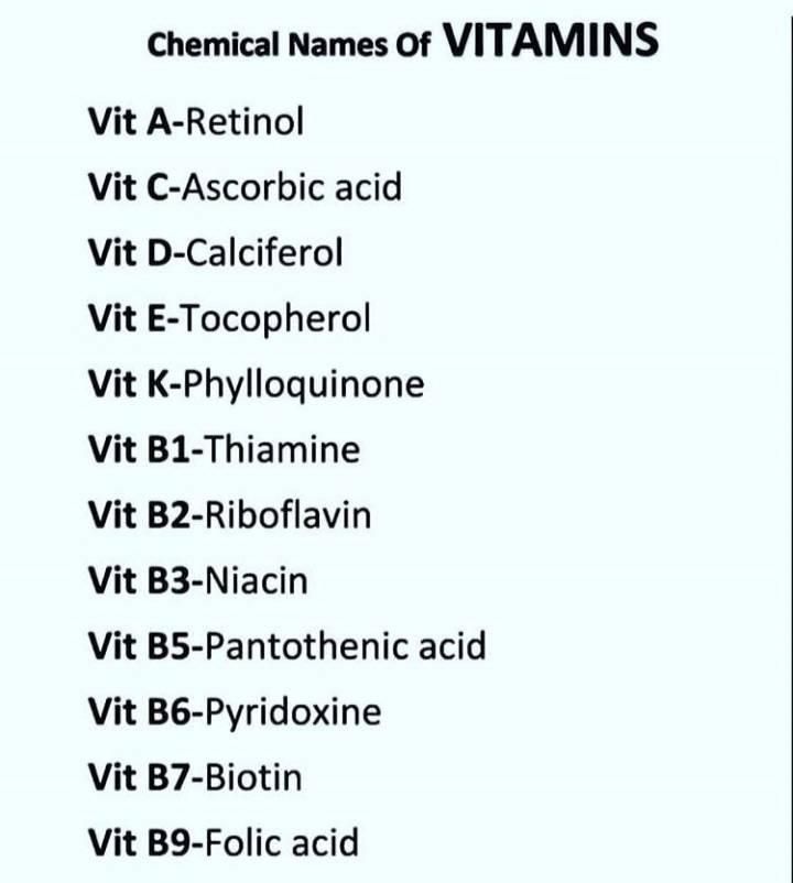 Chemical Names of Vitamins
