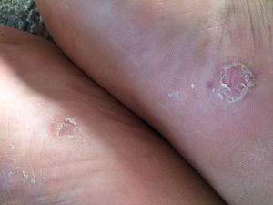 On both feet.. first small blisters then..