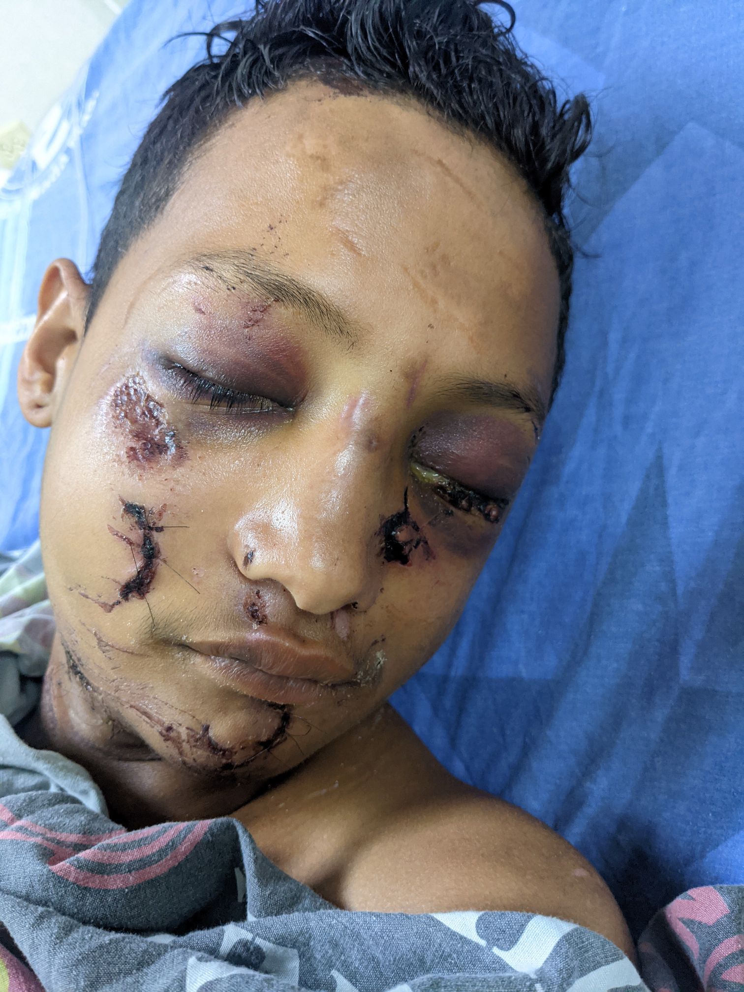 17-year-old boy with moderate blunt brain injury from a gang fight.