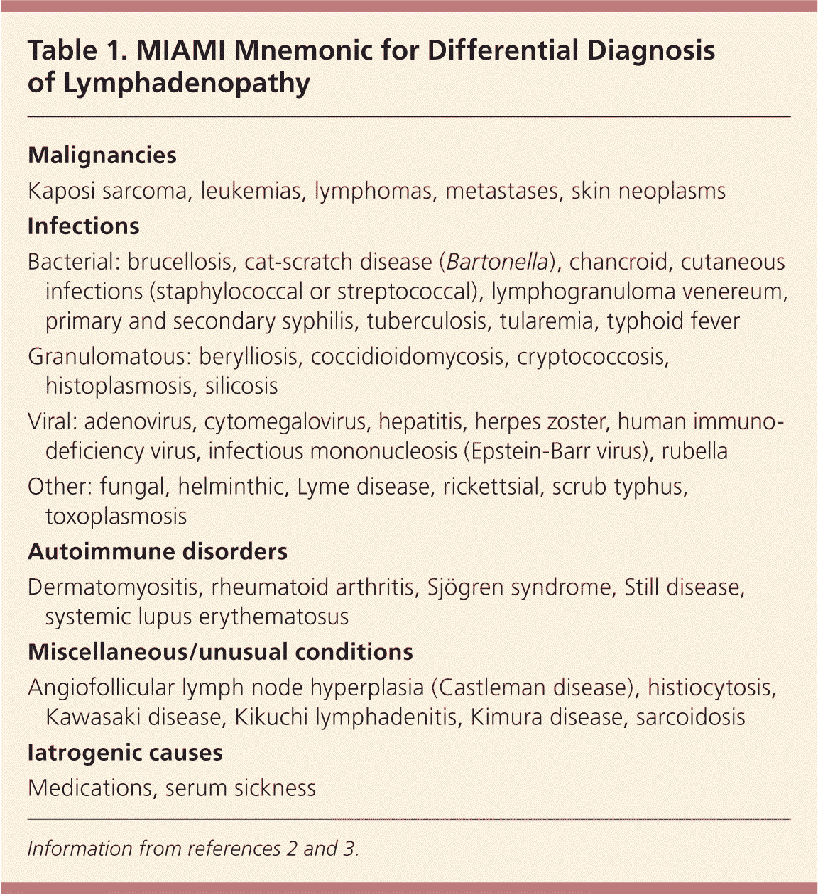Differential Diagnosis of Lymphadenopathy - MIAMI Mnemonic
