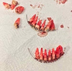 The teeth look in pretty good condition....what did the jaws look like? Did you try and reimplant or were no teeth the least of the poor patients problemsđ