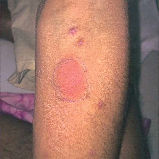 Mantoux test is a diagnostic test for latent tuberculosis. The procedure involves injecting 5 U of tuberculin on the volar surface of arm. The appearance of induration within 48-72 hours may indicate positive infection with mycobacterium tuberculosis. Since tuberculosis develops slowly, the mantoux test is repeated after few weeks to definitively rule out the presence of infection. Reference: https://www.nhs.uk/conditions/tuberculosis-tb/diagnosis/ Image via: https://www.researchgate.net/publication/230574729_Encephalopathy_due_to_tubercular_otitis_media/figures?lo=1