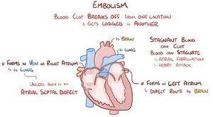 Why the blood clot moves from the right atrium to the left and towards the brain? Can it go somewhere else instead of the brain?