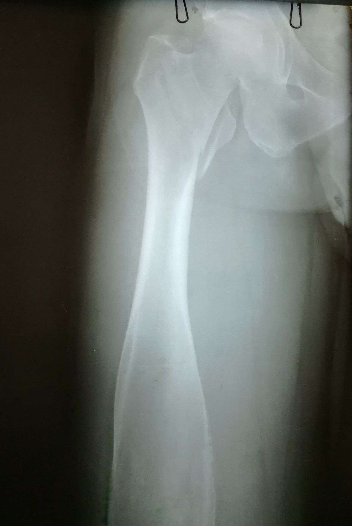 46yr male patient presented with right side pertrochanteric fracture after trauma. Also he has a history of left side femur head fracture 2 years back due to an accident....