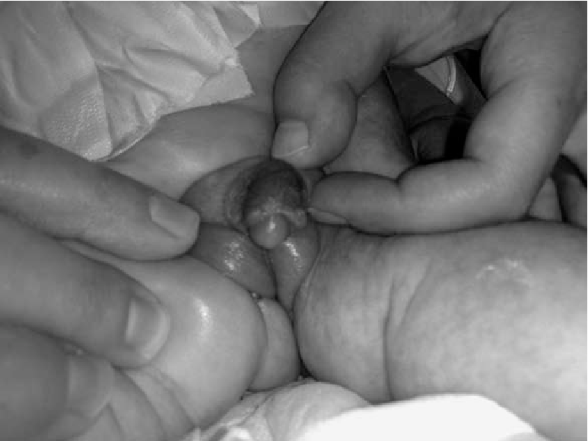 Ambiguous genitalia is a term denoted to external genitalia that are not clearly male or female. The external genitalia may or may not match the chromosomal sex of the baby. Possible causes of ambiguous genitalia are: - congenital adrenal hyperplasia - tumors - prenatal exposure to male hormones - 5a-reductase deficiency - androgen insensitivity syndrome - impaired development of testes Reference: https://www.mayoclinic.org/diseases-conditions/ambiguous-genitalia/symptoms-causes/syc-20369273 Image via: https://www.researchgate.net/figure/Ambiguous-genitalia-on-urogenital-examination_fig1_230643716