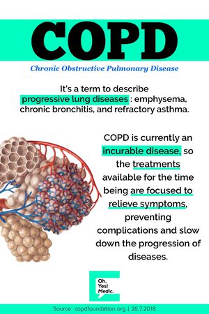 During my attachment in ED, most patients suffer from copd. They are usually treated with nebulisers with bronchodilator or hydrocortisone. . . . On my next post I will share about emphysema or you can google it now.
