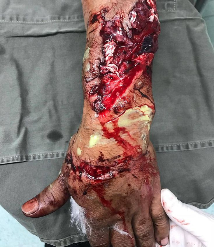 ⚠️ A case of a power grinder kickback towards the back side of the patients arm causing this severe injury! Upon closer inspection, you can see extensor tendons protruding from the wound. Extensor tendon lacerations of the hand and fingers are quite common constellations of injuries. Because of the superficial location of the extensor tendons in the wrist and hand, the laceration often easily directly observed on physical examination with manipulation of the overlying skin. The underlying joint is passively flexed and extended for full visualization of the injury area. Once the decision for surgical intervention has been made, the general principles of definitive wound debridement, early tendon repair, and early range of motion hand therapy guide the treatment plan for all extensor tendon injuries. Credit: @reconst.surg.col .