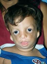 Mandibulofacial dysostosis also known as Treacher Collins syndrome is an inherited developmental disorder characterized by underdeveloped facial bones and a very small lower jaw and chin, called micrognathia. The most obvious facial differences are the underdeveloped cheekbones and the drooping lower eyelids It is recognized at birth and can also be diagnosed prenatally based on ultrasonography findings. The images shows the characteristic features of this condition. https://emedicine.medscape.com/article/946143-overview