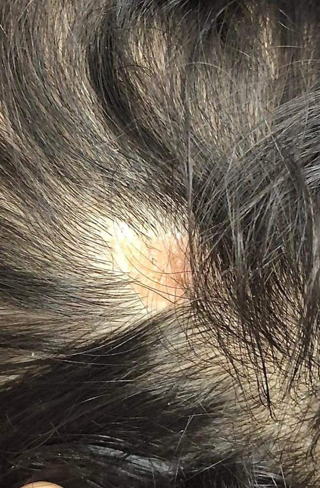 ✅Answer is 🟡Nevus sebaceus of Jadassohn🟡 also referred to as 🟡organoid nevus, 🟡is a congenital malformation involving hamartomas of the pilosebaceous follicular unit. 🟡These growths most commonly form on the 🟡scalp,