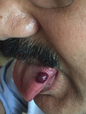Its a Ddx yes but given hx you can rule it out by now, carvenous hemangioma wouldn't happen suddenly while eating now would it ?😂