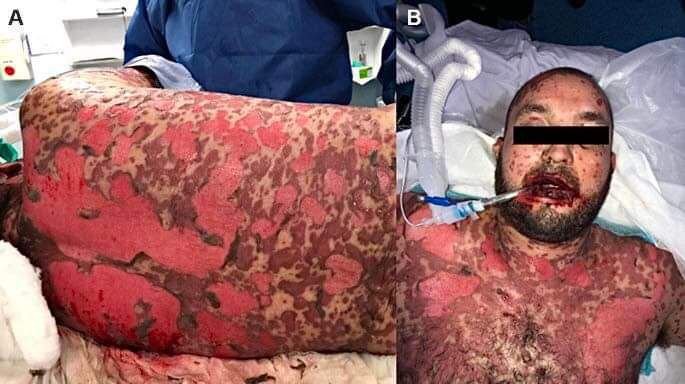 I saw a patient who had this (might have been SJS). He was en ex-biker with most of his upper body and arms covered in tattoos. They came out looking nearly as fresh as the day they were made! He made a full recovery but was admitted for nearly three months.