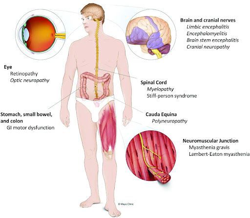 Paraneoplastic syndrome refers to signs and symptoms that may occur in presence of cancer. The signs and symptoms do not arise in the primary organ of the cancer, but in more distal areas. Common paraneoplastic signs and symptoms of bronchial CA are: - hypercalcemia - SIADH - trousseau's syndrome - cushing's syndrome Reference: https://www.ncbi.nlm.nih.gov/pmc/articles/PMC4127595/ Image via: http://www.ajnr.org/content/early/2020/10/22/ajnr.A6815
