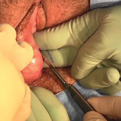 Bartholin's cyst refers to cystic dilatation of Bartholin's gland secondary to obstruction of the outflow. The cyst is usually painless, however, when infected, it can transform into abscess which is painful. Depending on size, pain, and infection, the Bartholin's cyst may be treated medically or surgically. Reference: https://www.mayoclinic.org/diseases-conditions/bartholin-cyst/symptoms-causes/syc-20369976 Image via: https://www.mdedge.com/obgyn/article/173573/surgery/excision-bartholin-gland-cyst