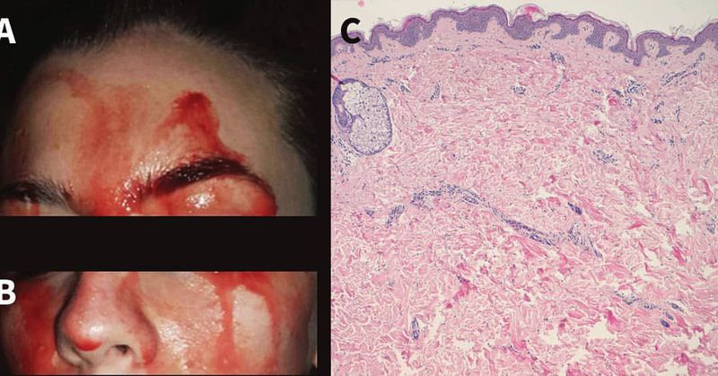 A young woman in Italy has a rare and mysterious condition that causes her to sweat blood, according to a new report of her case. The 21-year-old told her doctors that, over the last three years, she periodically experienced bleeding from her face and palms, without any cuts or skin lesions. These bleeding episodes typically lasted about 1 to 5 minutes, and were more intense when she was under emotional stress. While the woman was at the hospital, her doctors observed "the discharge of blood-stained fluid from her face," according to the report, in the Canadian Medical Association Journal. She was diagnosed with a rare condition in which blood oozes from intact skin and membranes, according to the National Institutes of Health's Genetic and Rare Diseases Information Center (GARD). After conducting a review of recent cases of hematohidrosis — 28 cases in the last 13 years — Duffin concluded that the condition really does exist. However, nobody knows what causes the condition. Some researchers have hypothesized that increased pressure in blood vessels leads to the passage of blood cells through the ducts of the sweat glands, according to GARD. Others speculate the condition may be the result of activation of the body's "fight or flight" response, which generally occurs when people experience sudden fear or stress. This response triggers the release of certain hormones that make a person more alert. @medicalcortex