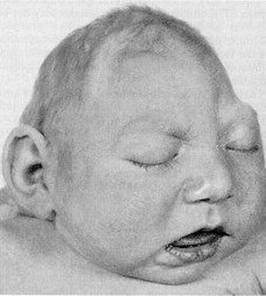 This is linked to ARPKD, found in young infants and some children before birth. It is caused by the inability to release hydrogen ions in the distal convoluted tubule. It occurs because of the affect that this genetic condition has on amniotic fluid concentration in the amniotic sac. The reduced amniotic fluid results in the amniotic sac compressing the childs skull and resulting in polycystic kidneys. These two factors affect development and often result in the death of these young infants
