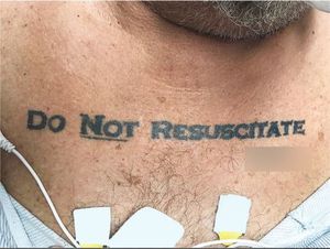 A Florida man's unusual tattoo sparked an ethical debate among his doctors. The man, who arrived unconscious at the hospital, had the words "do not resuscitate" tattooed on his chest. His doctors were torn: Should they honor the tattoo, without an official "do not resuscitate" (DNR) order? Or should they plan to resuscitate the man anyway, since they were uncertain if the tattoo really reflected his wishes? A medical ethics expert advised the doctors to honor the patient's tattoo, because it was reasonable to assume the tattoo "expressed an authentic preference." Later, the hospital found that the man actually did have an official DNR order with the Florida Department of Health. The man's condition soon deteriorated, and he died without undergoing CPR or invasive life-support methods, according to his wishes. @medicalcortex