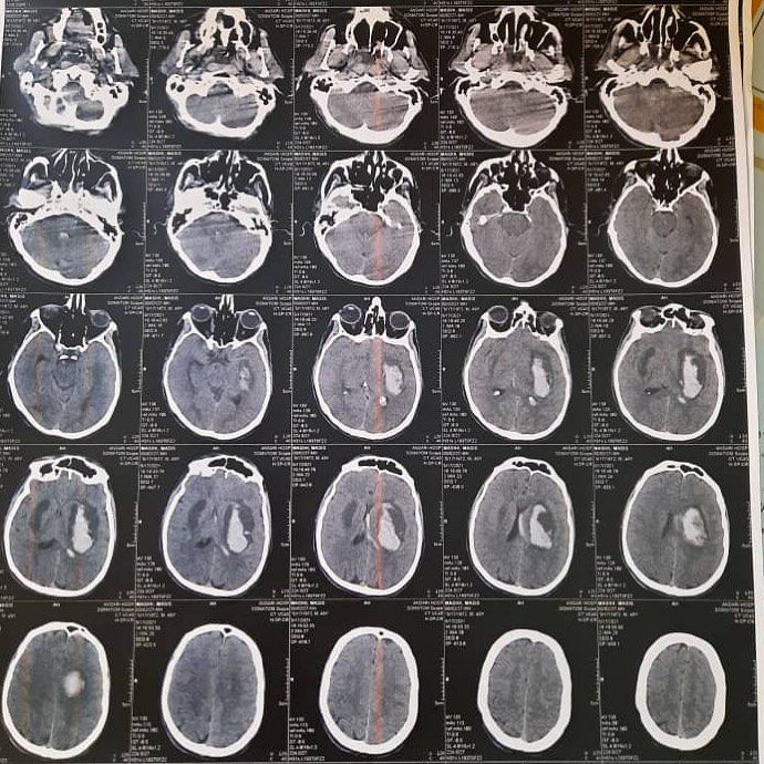 This is a CT scan of a young man's brain that has been poisoned with methanol. He is currently hospitalized in the ICU and is in a coma, free from the hustle and bustle of the world. This young man did not know the day before while consuming alcohol that he was consuming methanol instead of ethanol. But the manufacturer and distributor knew exactly what was in the bottle 🥺I do not know how likely this young boy is to survive, But I know that even if he stays, he will no longer have an eye to see, a foot to walk on, and a kidney to live ... 😑 Fake (fake) is very common these days .. Fake people, fake vaccines and drugs, fake masks, fake alcohol .. Be careful not to damage our brain and soul...