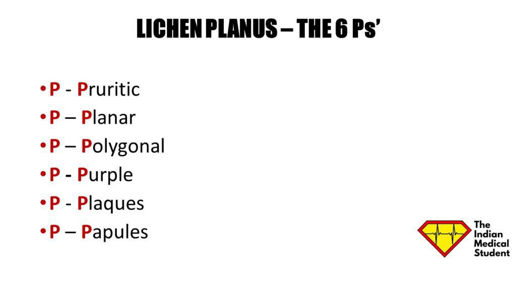 Image via: https://theindianmedicalstudent.com/the-6-ps-mnemonic-for-lichen-planus-tonic-mnemonics-for-clonic-teens/