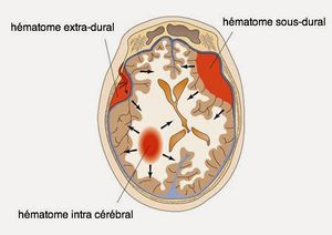 1,hémorragie extra-cérébral a,hématome extra dural (HED) b,hématome sous dura (HSD) c,hématome sous arachnoid (HSA)ou méning 2,hémorragie intra cérébral A,lobaire (malformation vasculaire) B,profond (HTA)