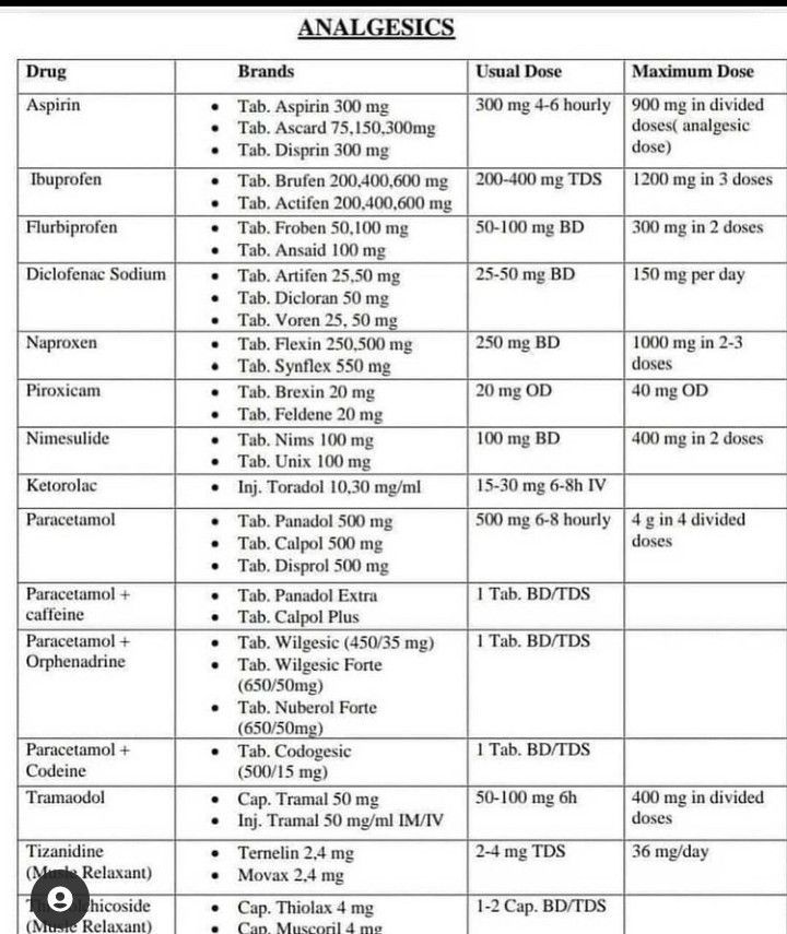 Pediatrics Dosage- Analgesics