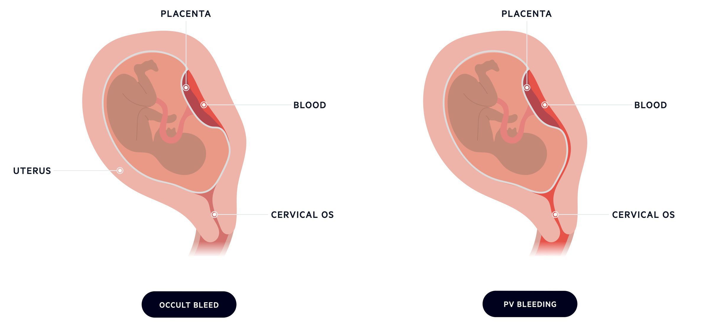 Antepartum hemorrhage refers to the per vaginal bleeding which may occur after 24 weeks of gestation till delivery. The causes of antepartum hemorrhage can be divided into placental, maternal, and fetal causes: PLACENTAL CAUSES - placental abruption - placenta previa FETAL CAUSES: - vasa praevia MATERNAL CAUSES: - cervicitis - cervical cancer - cervical ectropion - vaginal infection - vaginal trauma Reference: Obstetrics by Ten Teachers, 20th Edition Image via: https://app.pulsenotes.com/specialities/obstetrics/notes/antepartum-haemorrhage