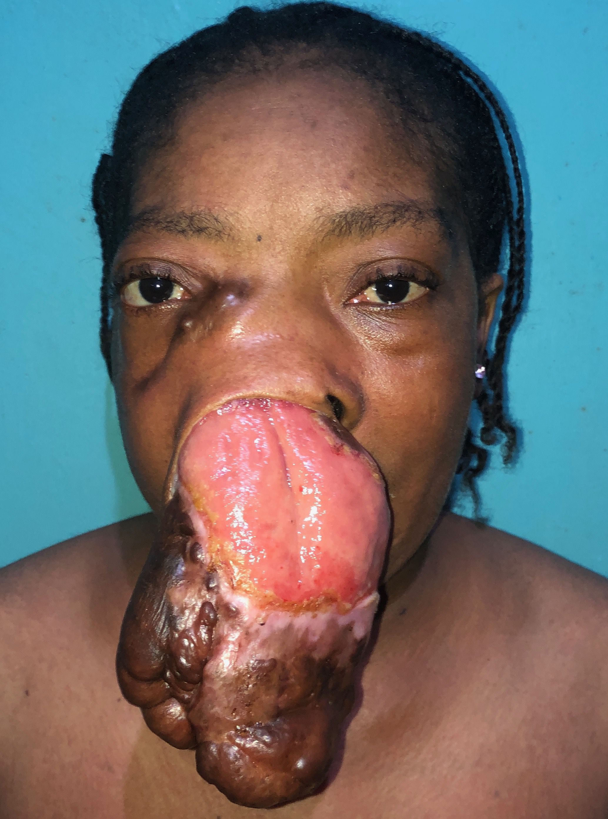 Young lady with mass growing from right nostril for 7 years. Published with permission of patient For more details and surgery, see https://www.blogger.com/blog/post/edit/2616546161277251392/912133090600493786