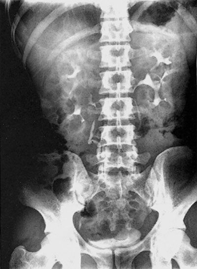 This CECT shows the spider leg deformity in IVU. in polycystic kidney disease.... One of the major characteristics go identity PKD