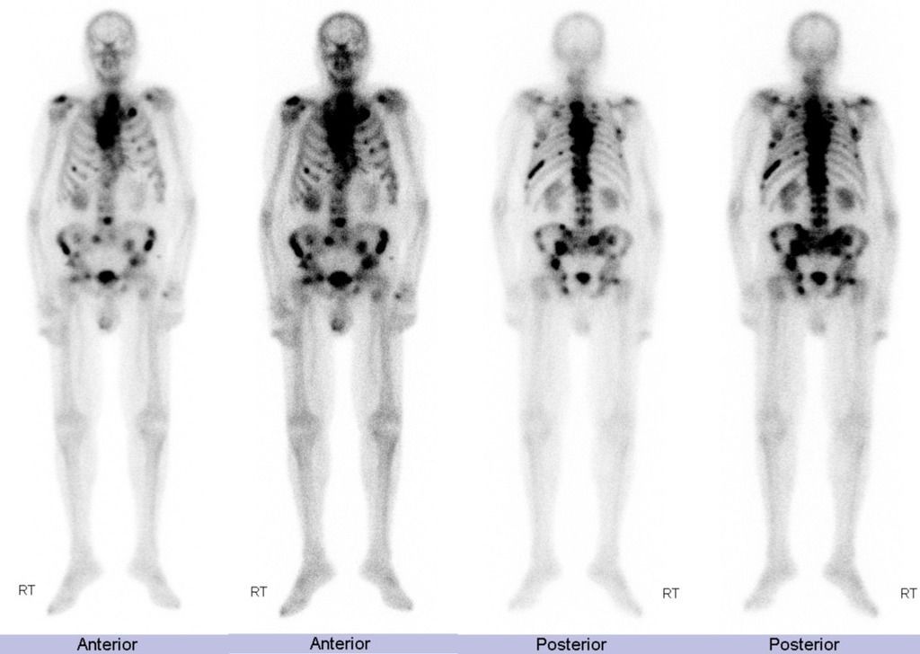 Following are the cancers that have tendency to metastasize to bone: - breast - lungs - prostate - kidney - melanoma - ovarian cancer - thyroid carcinoma Reference: https://www.cancer.org/treatment/understanding-your-diagnosis/advanced-cancer/bone-metastases.html#:~:text=Almost%20all%20cancers%20can%20spread,common%20site%20for%20bone%20metastases. Image via: https://radiopaedia.org/cases/metastatic-prostate-cancer-bone-scan?lang=gb