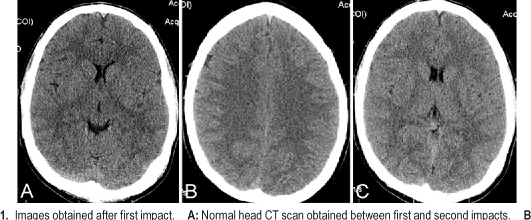 Second impact syndrome [SIS] refers to second concussion following primary brain injury. Getting a concussion after primary brain injury is fatal as it can cause death within 2-5 minutes. The cause of death is inability of the brain to autoregulate condition following the second injury. Hence, rapid edema ensues and death occurs. This is the reason why players after getting a concussion are not allowed to return to the field since second injury would cause rapid death. Reference: https://www.ncbi.nlm.nih.gov/pmc/articles/PMC2672291/ Image via: https://www.semanticscholar.org/paper/Second-impact-syndrome-in-football%3A-new-imaging-and-Weinstein-Turner/69a9d6c9338d3c02dfff866d65b71af65c0e8253