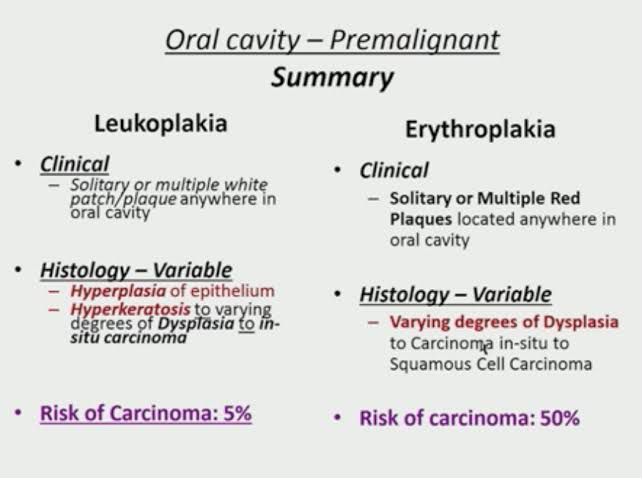 Erythroplakia vs leukoplakia