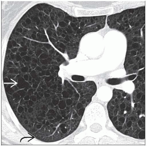 Lymphangioleiomyomatosis is a rare disease of the lungs. It is characterized by atypical proliferation of smooth muscle cells in the lungs. The consequences are dyspnea, cough, hemoptysis, pneumothorax, and death. Radiologically, the condition manifests as cyst and multifocal nodularities. Reference: https://www.ncbi.nlm.nih.gov/pmc/articles/PMC3337385/#:~:text=Lymphangiomyomatosis%20(LAM)%20is%20a%20rare Image via: https://radiologykey.com/lymphangioleiomyomatosis/