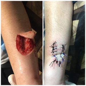 Injury of forearm of 14 years old boy caused by trauma(sharp material)
