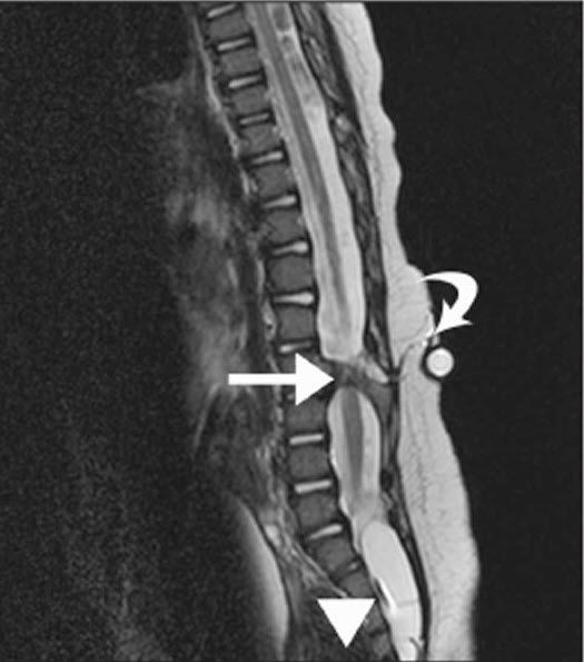 Diastematomyelia is a disease of spinal cord which belongs to a class of diseases called spinal dysraphism. Spinal dysraphism is refers to any tissue abnormality thar disrupt normal function and structure of spine or spinal cord. Diastematomyelia is also known as split spinal cord. It is characterized by presence of a sagittal cleft that divides the spinal cord into two parts. Reference: Bailey and Love's Short Practice of Surgery Image via: https://boneandspine.com/wp-content/uploads/2017/10/diastematomyelia.jpg