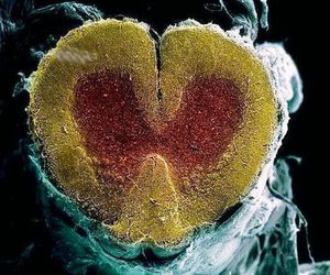 It has a central region of grey matter (red) that contains nerve cell bodies and their associated fibres. The outer zone of white matter (yellow- brown) consists solely of tracts of nerve fibres. There is an outer covering of meninges (white), specialized connective tissue layers & are three in number, named; 1 ) Dura matter. 2 ) Arachnoid matter. 3 ) Pia matter. Meninges provides protection and secretes cerebrospinal fluid (CSF).