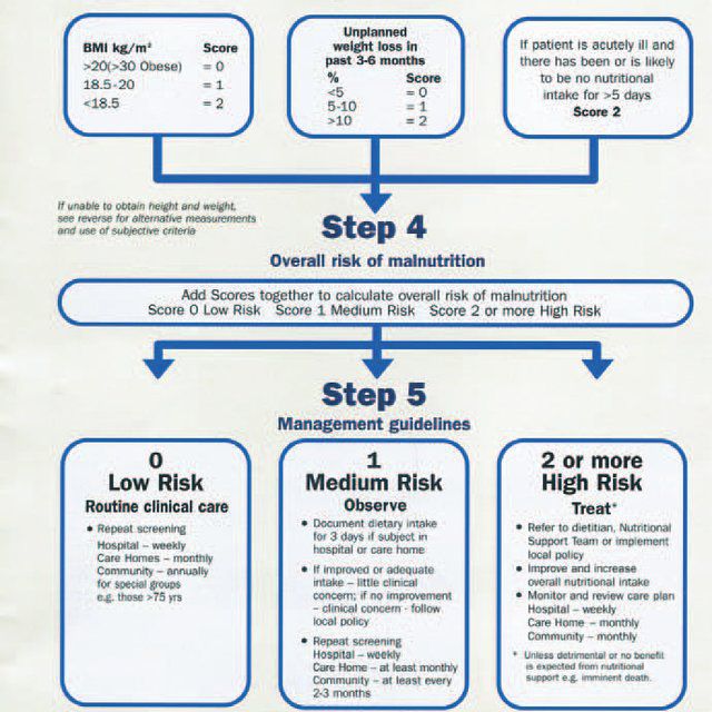 MUST stands for malnutrition universal screening tool. It is a five step process that aids in assessment, evaluation, and treatment of malnutrition. Image via: https://www.researchgate.net/publication/51368136_Nutrition_in_acute_care/figures?lo=1